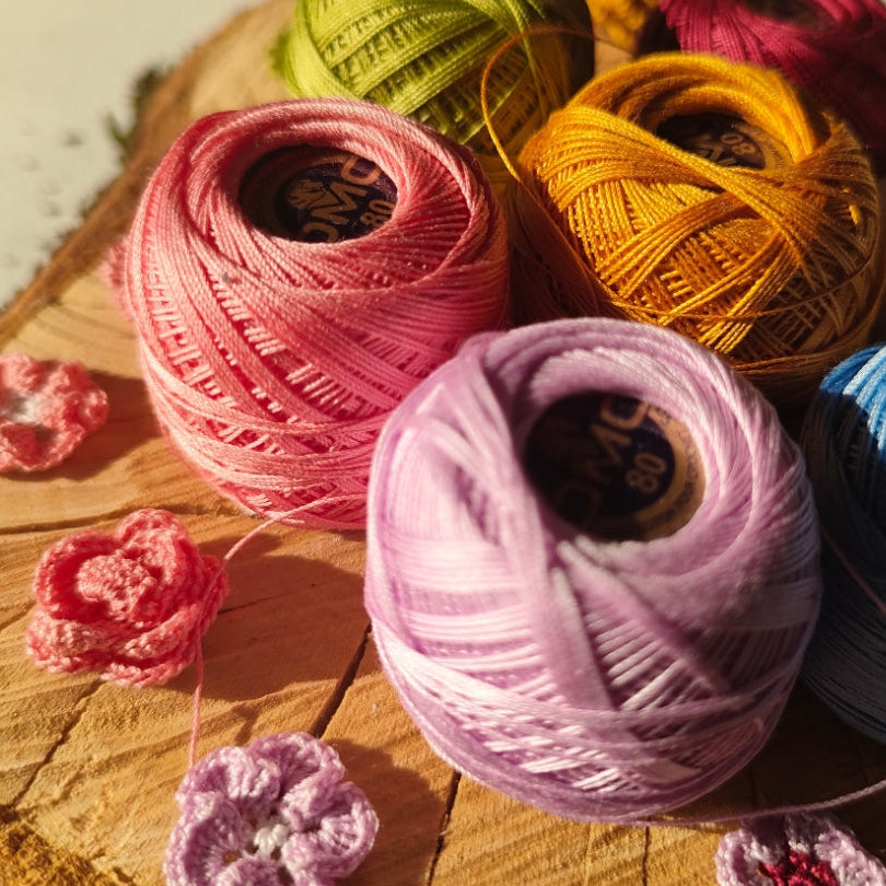 Le fil de coton DMC, fabriqué en France, apporte douceur et précision à chaque fleur.